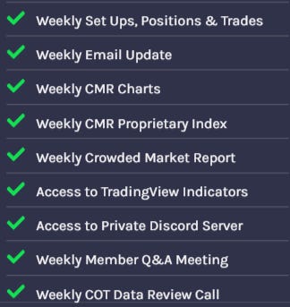 If you want to find out which index is currently crowded short and learn more about the COT, trader positioning and macro analysis please visit our website www.crowdedmarketreport.com. The services we provide are listed below, but I think it is worth highlighting that we provide industry-leading COT charts that are published on Friday before the market closes and before any other chart service out there. We also include all markets available in the COT report, complimentary TradingView indicators and our proprietary CMR COT Index which shows the level of crowdedness.
