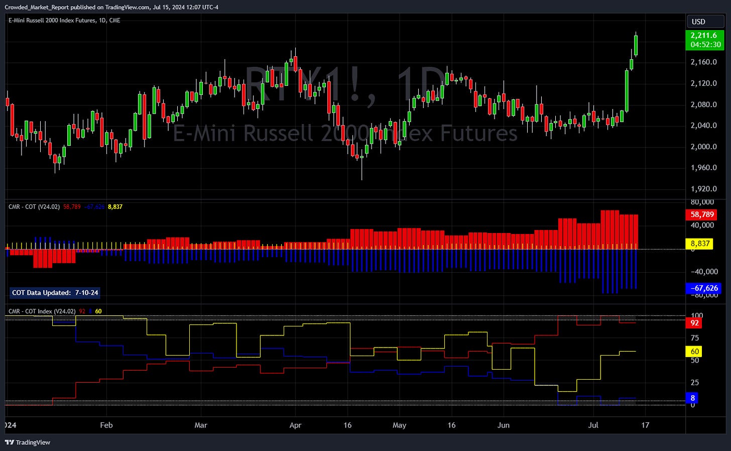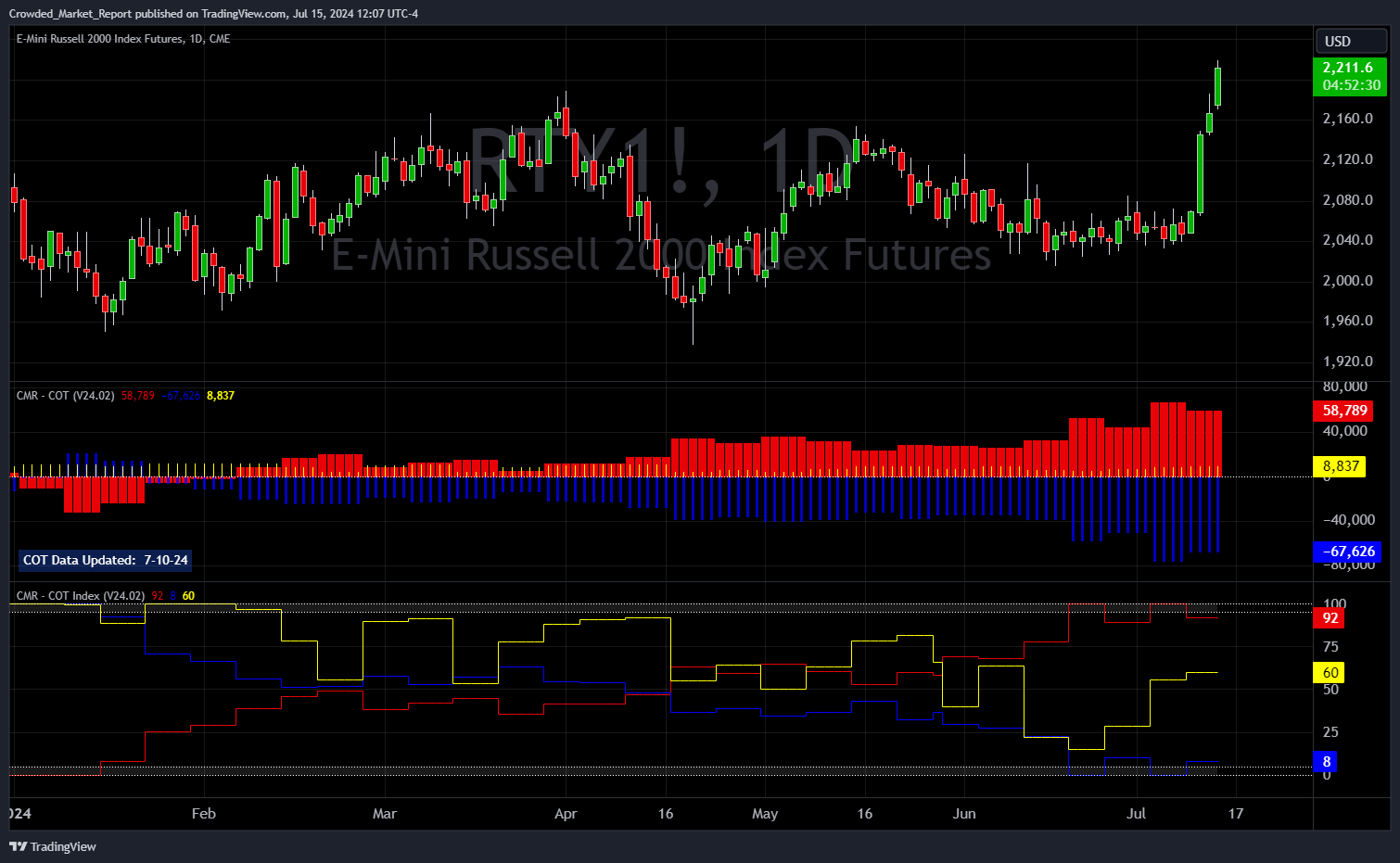The COT is a great risk management tool, where at a minimum, traders should have stayed away from being short the Russell due to low reward/high risk.