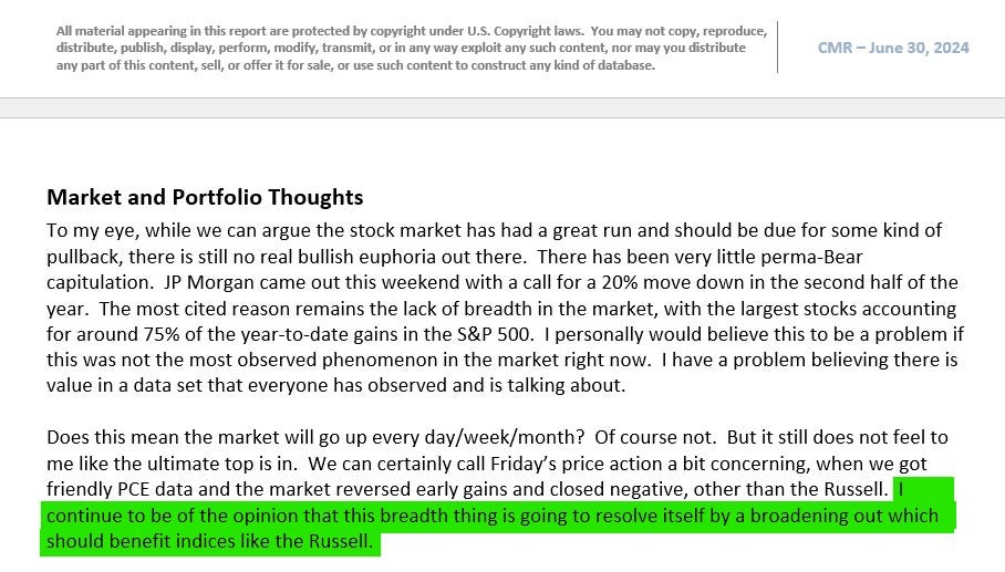 Here is an excerpt from the Crowded Market Report on 6/30/2024: