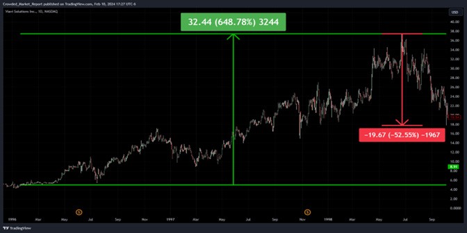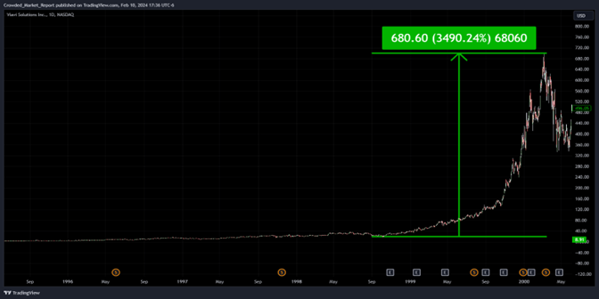 Now in fairness there are some differences here. JDSU started at $5. Nvidia had already gone up from $5 to $300 from 2015 to 2019 before dropping about 60% during the 2022 bear market. So, the total move is actually like what JDSU did from low to high.